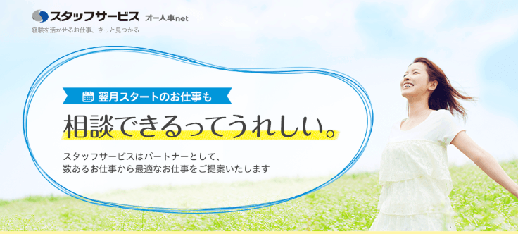登録スタッフ数120万人以上の実績。紹介スピードが早く、翌月スタートのお仕事紹介も可能。