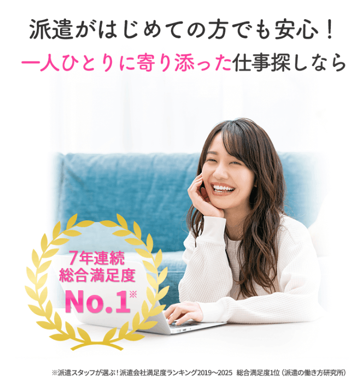 派遣スタッフ満足度調査で「今後もこの派遣会社から働きたい」でNo.1を獲得。信頼の証です。